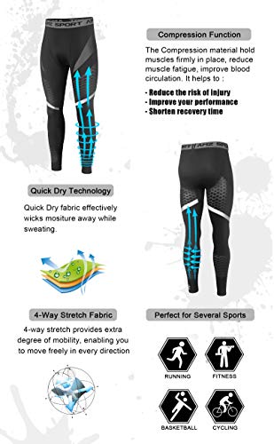 AMZSPORT Mens Sports Compression Leggings Training Running Tights with Mesh Print