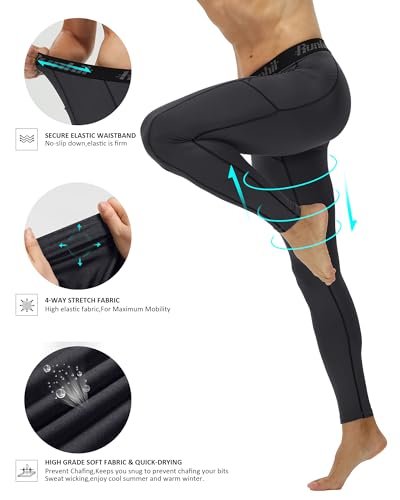 Runhit Men’s Running Leggings Gym Compression Pants Men Sports Tights Thermal Base Layer Trousers for Cycling Football Golf Yoga