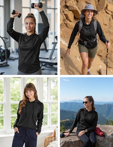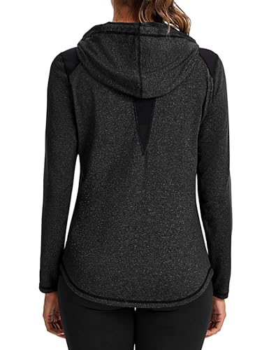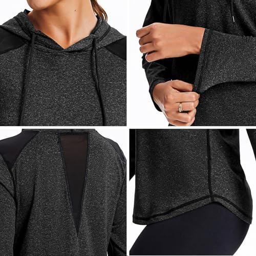 Gyabnw Activewear Gym Tops Long Sleeve Hoodie with Thumb Holes Mesh Design and Drawstring UV Protection for Gym Running Yoga