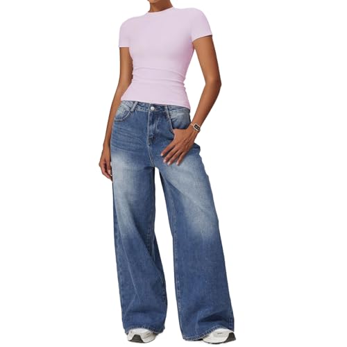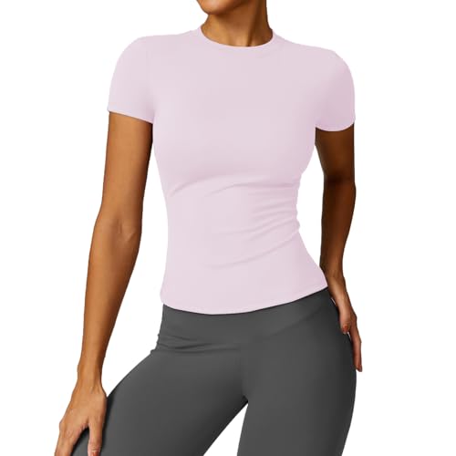 Women’s Gym Tops Slim Fit Crew Neck Short Sleeve Tight Basic Solid Tee Athletic Running Yoga Sports T-Shirts