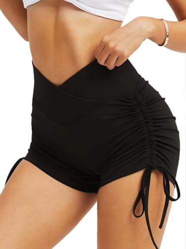 HAWILAND Women Gym Shorts Ruched Butt Adjustable Short Pants Drawstring Side V Waist Athletic Shorts Running Short