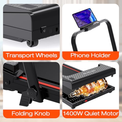 【Powerful and Quiet Motor】The incline treadmill features a powerful 1400W motor and supports weights up to 120KG. It includes a built-in cooling system and ultra-quiet operation, making it ideal for home and office use without worrying about disturbing your family or others.
