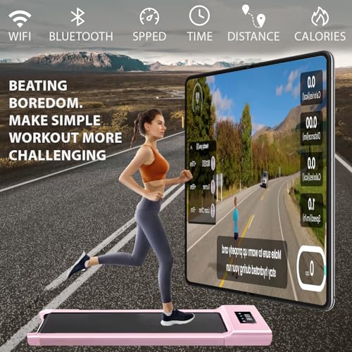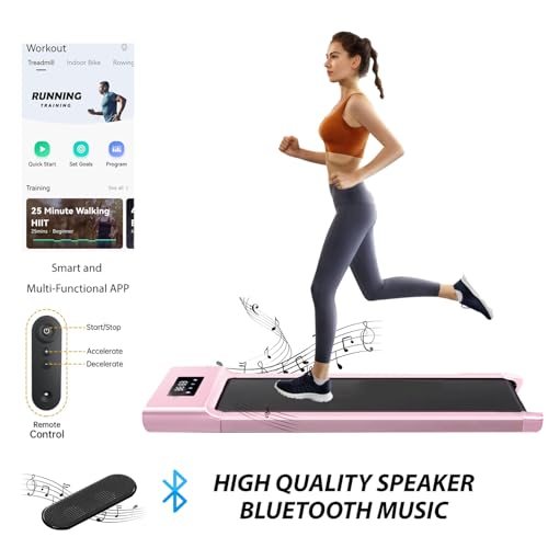 Under Desk Treadmill, Walking Treadmill Running Machines with App & Remote Control Bluetooth Speaker for Home Portable Walking Running Pad Machine 1-12km/h for Home or Office (Pink)