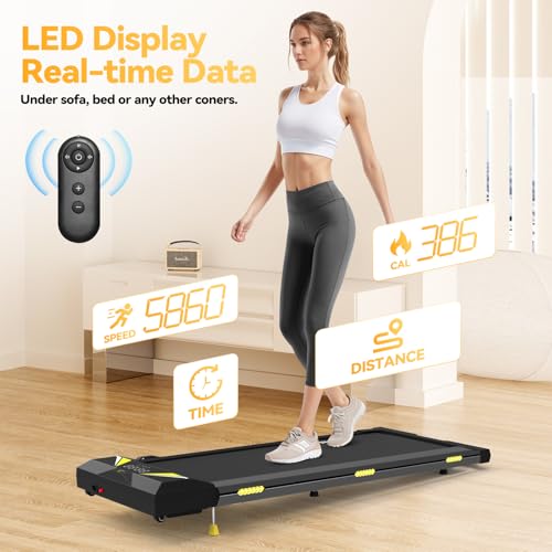 LED DISPLAY & REMOTE CONTROL – This walking pad clearly displays and tracks workout data through the LED display, showing speed, distance, calories, time. In addition, you can adjust the speed and control the walking pad through the remote control.