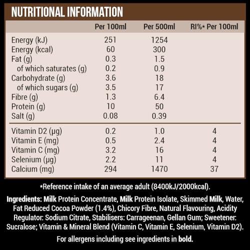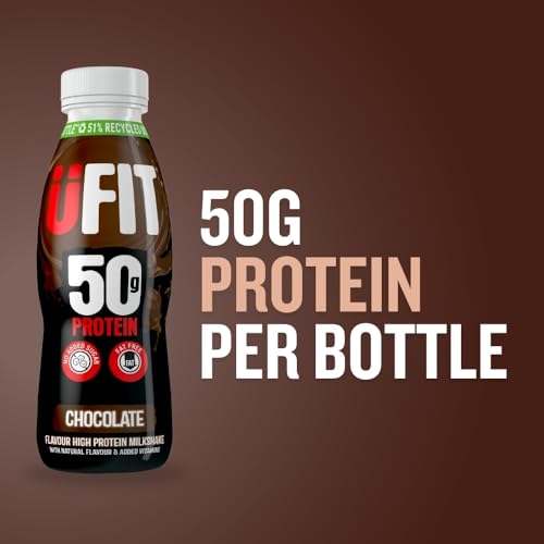 UFIT High 50g Protein Shake – Chocolate Flavour – No Added Sugar – Low in Fat – Ready to Drink -Pack of 8 x 500 ml (Packaging May Vary)