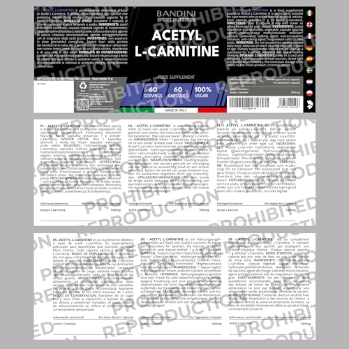 💪 FUNCTIONALITY. Our Acetyl-L-carnitine can increase energy and endurance and is suitable for athletes who carry out intense physical activity, particularly for aerobic performance. Furthermore, acetyl-L-carnitine is an excellent physiological transporter of fatty acids, which promotes the acceleration of metabolism. Each capsule contains 1,000 mg of L-Carnitine, the recommended daily dose to support energy metabolism and muscle growth. Each pack contains 60 capsules for a 2 months supply.