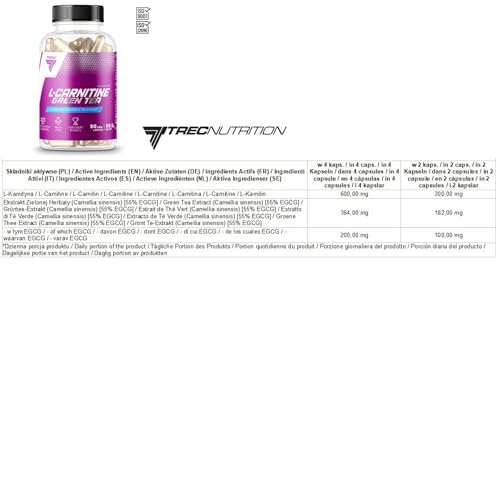 TREC Nutrition L-CARNITINE + Green Tea | Turn Fat into Energy | Weight Loss Metabolism Booster | 90 Capsules