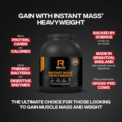 Reflex Nutrition Instant Mass Heavyweight – Mass Gainer – Over 1000 Kcal per Serving, 60g Protein, Creatine – High Calorie Post Workout or Before Bed Protein Shake (Chocolate Perfection, 2 kg)