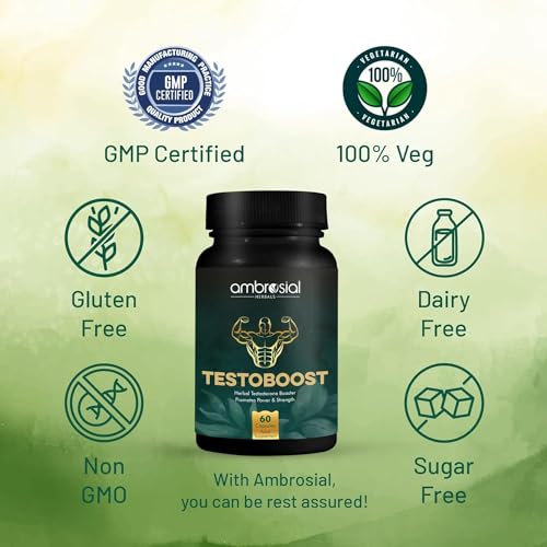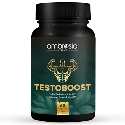 Ambrosial Testoboost Ultra Premium Herbal Testosterone Booster for Men | Blend of 3 Natural Herbs Testosterone Supplements for Men | Support Muscle Growth & Energy Boost (Pack of 1-60 Capsules)