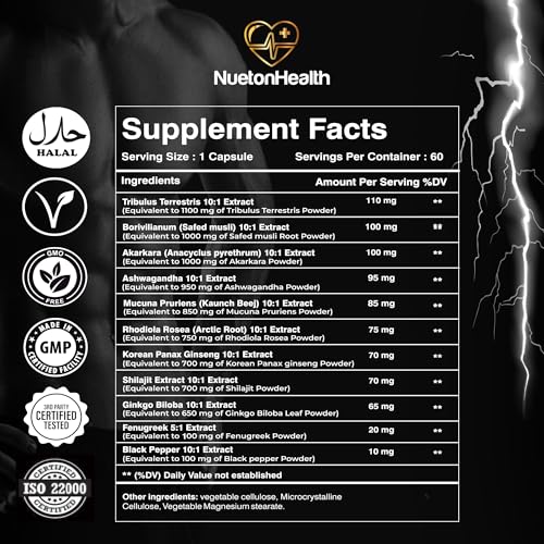 PREMIUM QUALITY INGREDIENTS – Crafted with the highest quality natural ingredients, Ultra Testo Boost includes Tribulus Terrestris and Korean Panax Ginseng for maximum potency and efficacy. Each capsule is produced in a facility which is HACCP, GMP, and ISO 22000 certified, ensuring you receive only the best for your body. Trust NuetonHealth’s commitment to purity and excellence.