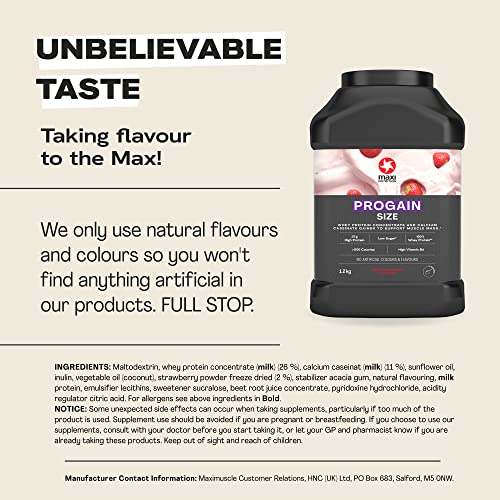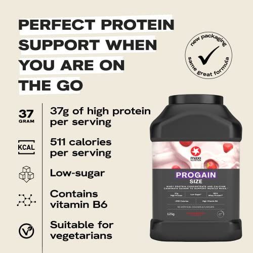 MaxiNutrition Progain – Strawberry – Whey Protein Powder Sports Supplement Shake for Size & Mass – 1.2kg – 10 Servings