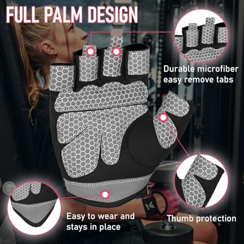 PREMIUM QUALITY CONSTRUCTION: Made with durable and high-quality materials, these ladies gym gloves are built to withstand rigorous training sessions, ensuring long-lasting performance. Reinforced stitching enhances durability, making these workout exercise gloves a reliable choice for consistent use.