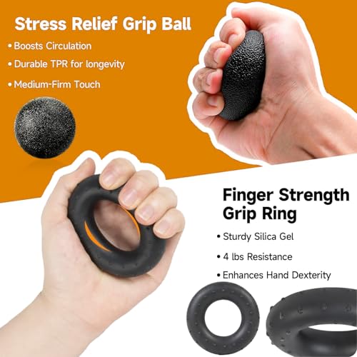 Hand Grip Strengthener Workout Kit (5-Pack) – Includes Adjustable Resistance Forearm Grippers, Finger Stretcher, Grip Ring, and Stress Relief Grip Ball for Athletes