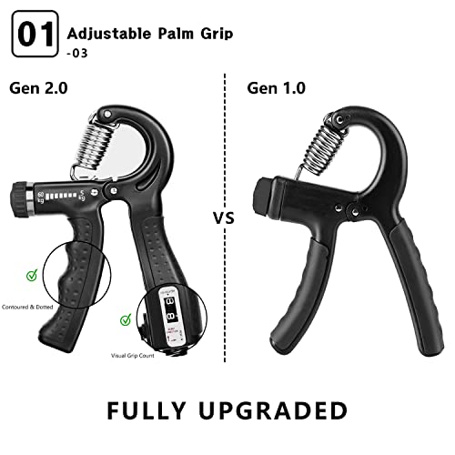 Smart Counting Grip The GRM hand grips strengthener adds a mechanical counter at the bottom. Press the button hard to count automatically. Record the number of times you do each exercise and use it repeatedly.