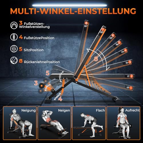 【7 Backrest & 4 Seat adjustments】Designed with 7 backrest adjustments,4 Seat adjustments and 3 footrest adjustments, this adjustable weight bench offers people a full-body workout to strengthen and tone all of your muscle groups to meet your fitness goals with ease. Foldable design makes you can store quickly under beds or in closets to save the space.