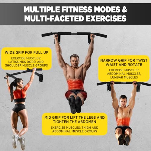 【Comfortable Foam Handle】 Six foam anti-skid handles of pull up bar wall mounted are suitable for various grasping methods of upward gravity. The anti slip rubber coated handle of pull-up bar ensures a safe and comfortable grip even during high-intensity training. The tilted handle and ergonomic design of the chin up bar make your hands comfortable and increase exercise time.