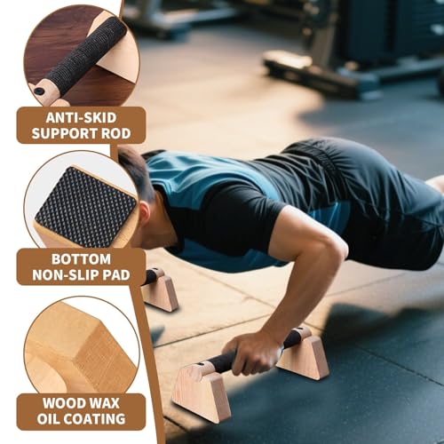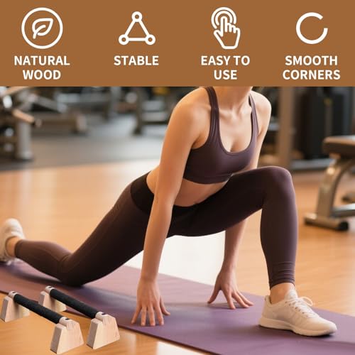 Wooden Parallettes Solid Pushup Bars Stands Dip Calisthenics Bars Non-slip Rubber Feet Handstand Bars Calisthenics Equipment for Fitness, Gymnastics