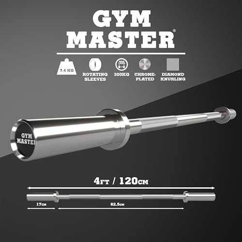 GYM MASTER 2″ Diameter Olympic Barbell with Rotating Sleeves & Spring Clip Collars in 4ft, 5ft, 6ft, 6ft international and 7ft Sizes.