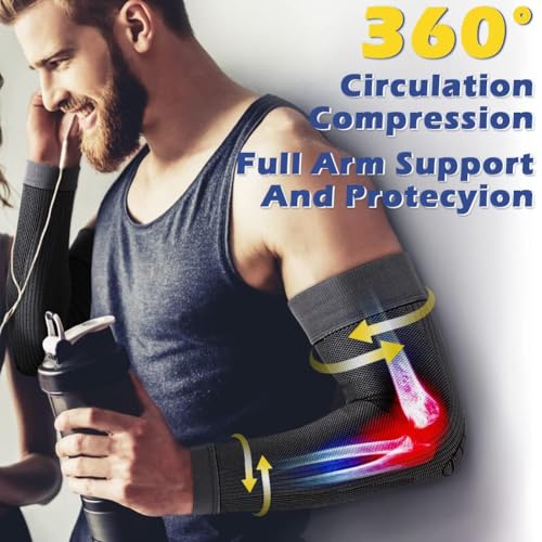 beister Compression Arm Sleeves Elbow Supports: Full Arm Supports Protection for Men & Women (Pair), Non-Slip Breathable Sports Arm & Elbow Braces for Arthritis, Lymphedema, Bursitis, Workout