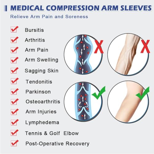 【PHYSICAL MITIGATION】: Beister arm & elbow compression sleeves can improve arm health by improving muscle oxygenation, reducing swelling and lactic acid buildup, and reducing recovery time. Arm & elbow supports provide pain relief by means of medical grade compression for a variety of conditions, including tendonitis, arthritis, bursitis, lipedema, arm Injuries, sagging skin, tennis & golf elbow, etc. Beister arm & elbow supports are ideal for post-surgical recovery and sports injury prevention.
