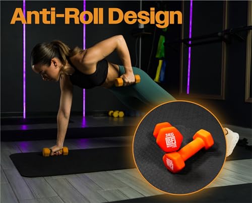 Bestfor Neoprene Dumbbell Set – 18kgs (2 x 1kg, 2 x 3kg, 2 x 5kg) With Stand For Fitness, Workouts, Strength Training For Men and Women At Home and Gym With Exercise Chart