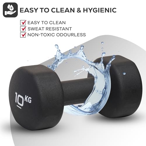 Sweat Proof & Hygenic – The high-quality neoprene coating on these dumbbells provides a secure, comfortable grip and makes cleaning effortless, making them ideal for intense, sweat-filled workouts.