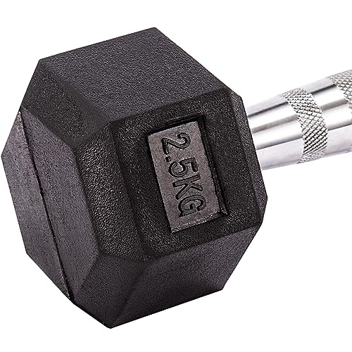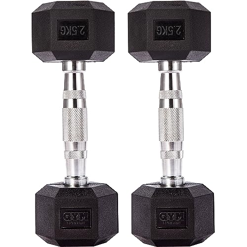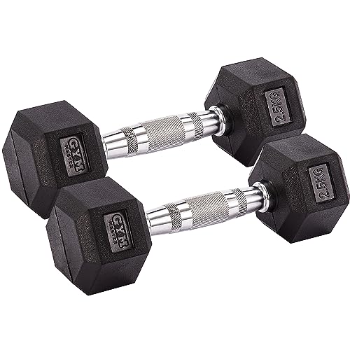 GYM MASTER Hex Dumbbells – Rubber Encased Cast Iron Hand Weights – Pair of 2.5KG (5KG Total)