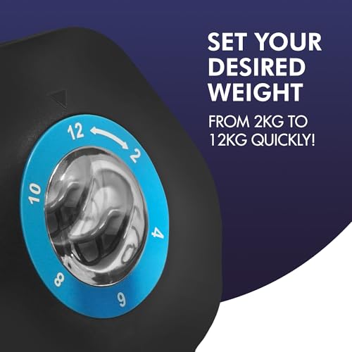 ADJUSTABLE WEIGHTS FOR FLEXIBLE WORKOUTS: Customize your training with adjustable dumbbell weights from 2kg to 12kg per dumbbell, supporting a wide range of exercises. With a combined total weight of 24kg, this set is ideal for strength building, toning, and full-body workouts.