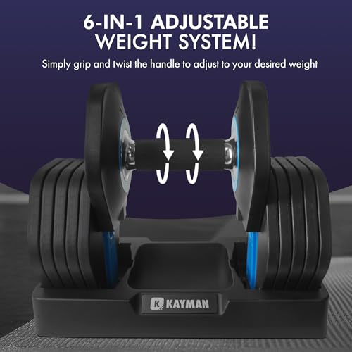 Kayman Adjustable Dumbbell Pair 2x12kg, Powerblock 6-in-1 Weight Set with Quick Radial Dial System, Adjustable Dumbbells Set Strong Grip Workouts & Strength Training dumbells for Home, Gym Fitnes