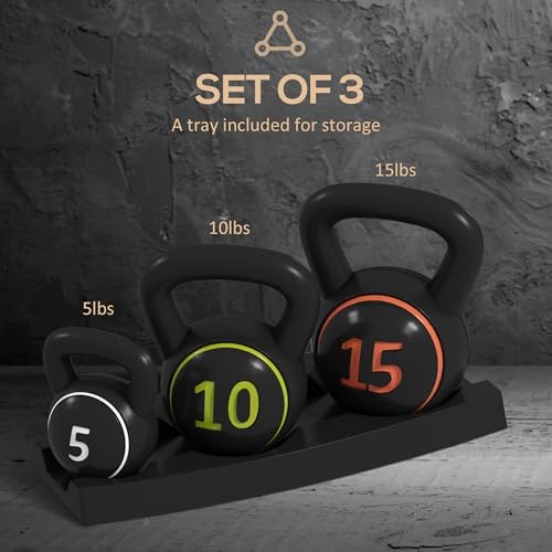 SPORTNOW Set 3 Kettlebell Set Weights with Storage Stand for Home Gym Weight Lifting Training, 5lbs, 10lbs, 15lbs (2.2kg, 4.5kg, 6.8kg)