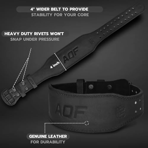 AQF Weight Lifting Belt for Men Gym Fitness, 4″ 6″ Padded Lumbar Back Support, 7mm Thick Leather Training Belt with 11 Adjustable Holes, Ideal for Powerlifting, Bodybuilding