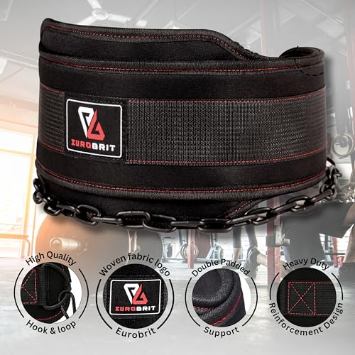 EURO BRIT Dip Belt with 36 Inches Heavy Duty Lifting Chain, Powerlifting Weight Belt for Pull Ups, Weight Training Workout Thick Neoprene Padded Dipping Belt with 40 Inches Long Chain.
