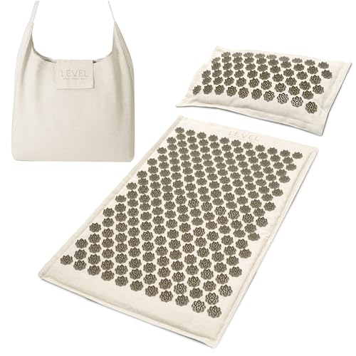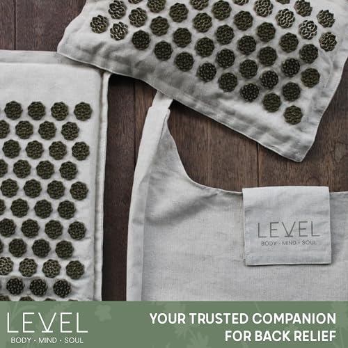 Level Body Mind Soul – Acupressure Mat and Pillow Set | Coconut and Linen Material | Acupressure Mat for Back and Head | Carrying Bag Included | Acupuncture for Stress and Tension Relief