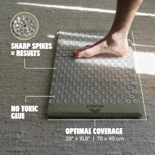 TIRED? SORE? STRESSED?: Melt tension in minutes with the spiky mat for stress that could change your life. The ShaktiMat is an unforgettable experience that targets mind and body tension through acupressure. Initially it feels like lying on spikes; after 5 minutes, discomfort and pain transforms into the healing power of acupuncture and deep relaxation.