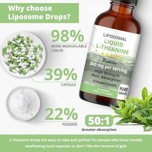 LIPOSOMAL Liquid L-Theanine Drops | L-Theanine for Stress Relief, Relaxation, Focus Without Drowsiness | L-Theanine MAX Absorption | 300mg per Serving | Synergistic with Coffee or Caffeine