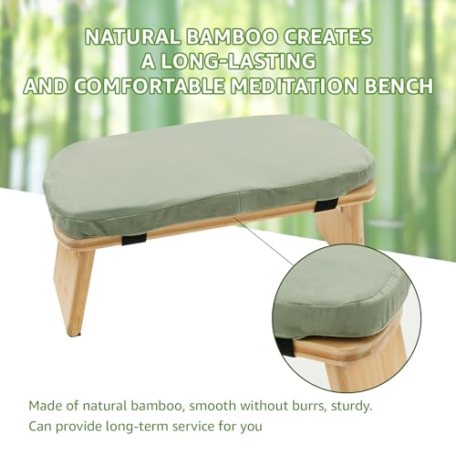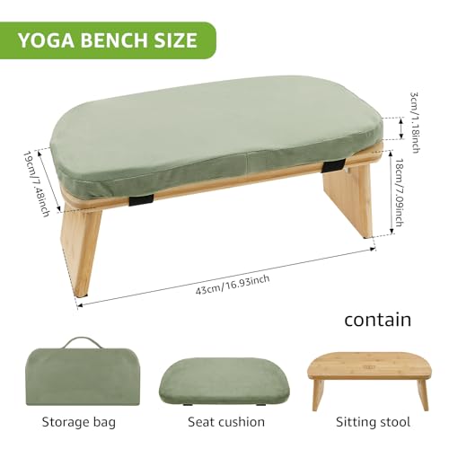Eyoulife Bamboo Yoga Bench with Foldable Legs, Ergonomic Kneeling Stool with Cushion Portable Prayer Bench for Kneeling Sitting Prayer Extended Practice,Yoga (Green)