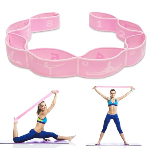 Yoga Stretching Bands, Elastic Flexibility Yoga Stretching Strap with 8 Adjustable Loops, Yoga Belt for Stretching Yoga Equipment for Beginners, Pilates, Dance, Flexibility Training