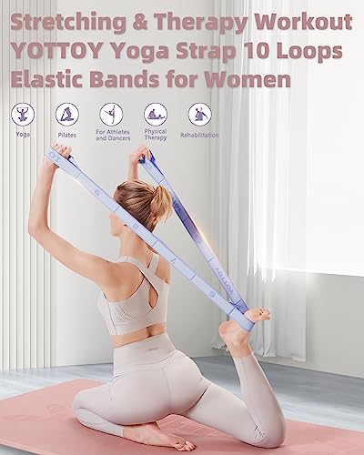 YOTTOY Yoga Strap and Resistance Bands-Exercise Elastic Bands for Working Out Women with 10 Loops-Perfect for Stretching and Physical Therapy