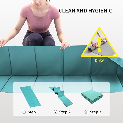 【Space-saving】- Yoga mat size is 1830 x 610 x 4mm, can be folded into 305*265*60mm, foldable yoga mat weight is 1.1kg, perfect for travel yoga mat