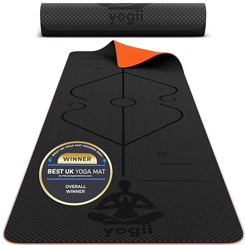 Yogii Exercise Yoga Mat – Non-Slip 6mm Thick TPE Mat, Travel-Friendly, Perfect for Home & Gym Workouts, Fitness, Pilates – Laser Alignment Guides for Men & Women
