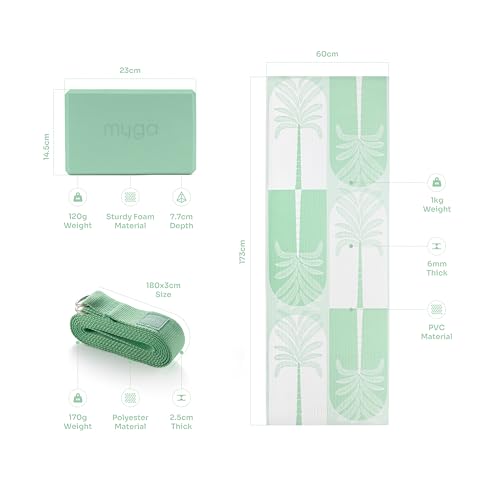 Myga Yoga Starter Set – 6mm Non-Slip Exercise Mat, Block & Strap for Yoga, Pilates, Meditation & Stretching – Beginners Kit for Men & Women with Gift Box – Durable for Home, Gym & Travel – 173 x 61cm