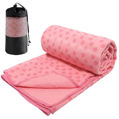 Audasi Yoga Mat Towel Yoga Towel Non Slip Hot Yoga with Mesh Carrying Bag 183 * 63cm Large Gym Towels Quick Dry Portable Breathable Yoga Mat Towel for Bikram Pilates Gym Workout (Pink)