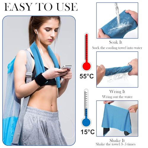 【Compact and Portable】: Each cooling towel measures 30×80 cm, making it easy to carry in your gym bag or backpack; Lightweight and foldable, they are convenient for travel and on-the-go use
